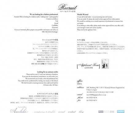 東京のスタイリストオフィス「ANOTOKI」のwebサイトを制作しました。